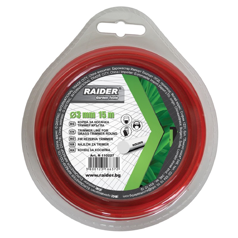 Η στρογγυλή μεσινέζα RAIDER 110227 είναι η ιδανική επιλογή για κοπή γρασιδιού και άλλες εργασίες κήπου. Με πάχος 3mm και μήκος 15m, προσφέρει αξιόπιστη απόδοση και αντοχή σε κάθε χρήση.