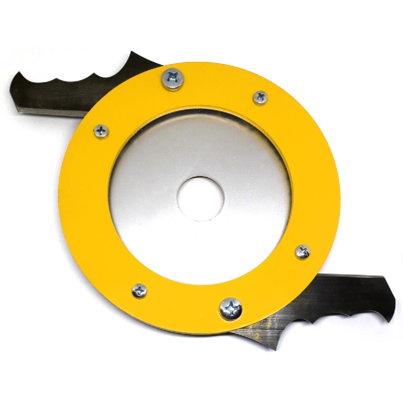 Η διίπτερη κεφαλής Blade Cut προσφέρει αξιόπιστη κοπή χάρη στο ειδικό κράμα αλουμινίου υψηλής έλασης και τα 2 πτερύγια διπλής κοπής από ειδικό κράμα χάλυβα Uddeholm Σουηδίας. Οι δαχτυλίδια έδρασης από ατσάλι Hardox και οι σταυρωτοί κοχλίες με τα περικόχλια ασφαλείας εξασφαλίζουν ακόμη μεγαλύτερη αντοχή και ασφάλεια κατά τη χρήση.