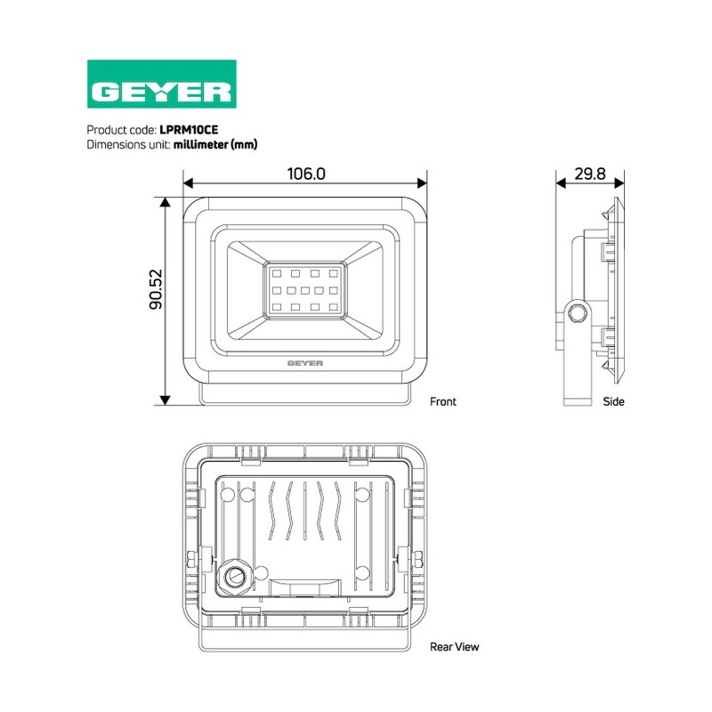Ο προβολέας LED GEYER LPRM10CE προσφέρει ισχυρό και σταθερό φωτισμό με κατανάλωση μόλις 10W, εξασφαλίζοντας χαμηλή ενεργειακή κατανάλωση και υψηλή φωτεινότητα 900LM. Διαθέτει χρωματική απόδοση 4000K, παρέχοντας φυσικό λευκό φως που είναι ιδανικό για οικιακές και επαγγελματικές εφαρμογές. Με βαθμό στεγανότητας IP65, είναι απόλυτα ανθεκτικός σε δύσκολες καιρικές συνθήκες, καθιστώντας τον ιδανικό για εξωτερική χρήση.