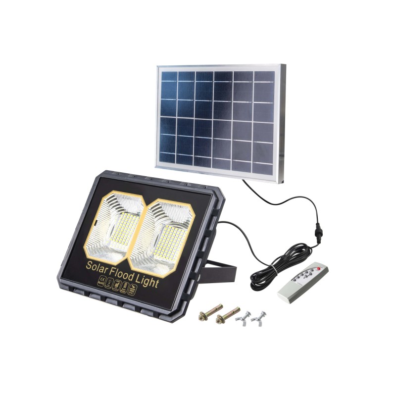 Ο ηλιακός προβολέας LED MAKALON με τηλεχειριστήριο παρέχει φωτισμό με εξαιρετική απόδοση. Με φωτεινότητα 3000 lum και ένταση φωτός που ρυθμίζεται σε 4 τρόπους, εξυπηρετεί κάθε ανάγκη φωτισμού. Ο ανιχνευτής κίνησης και η αυτόματη ενεργοποίηση το σούρουπο εξασφαλίζουν οικονομία ενέργειας. Με εύκολη τοποθέτηση και ανθεκτική κατασκευή από μέταλλο και πλαστικό, αποτελεί ιδανική λύση για αξιόπιστο και βιώσιμο φωτισμό.