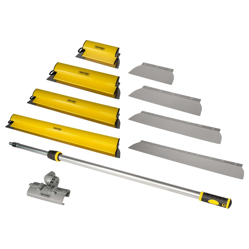 Το σετ TOP MASTER 320151 αποτελεί μια ολοκληρωμένη λύση για επαγγελματίες και ερασιτέχνες που επιδιώκουν άριστο φινίρισμα σε εφαρμογές γυψοσανίδας. Περιλαμβάνει 4 μαχαίρια στόκου διαφορετικών μηκών, 4 εφεδρικές λεπίδες, ένα κλιπ και μια τηλεσκοπική λαβή γενικής χρήσης. Όλα τα εξαρτήματα φυλάσσονται σε πρακτική θήκη μεταφοράς και αποθήκευσης. Οι λεπίδες από ανοξείδωτο ατσάλι εξασφαλίζουν μεγάλη ανθεκτικότητα, ενώ ο εργονομικός σχεδιασμός καθιστά την εργασία εύκολη και ξεκούραστη.