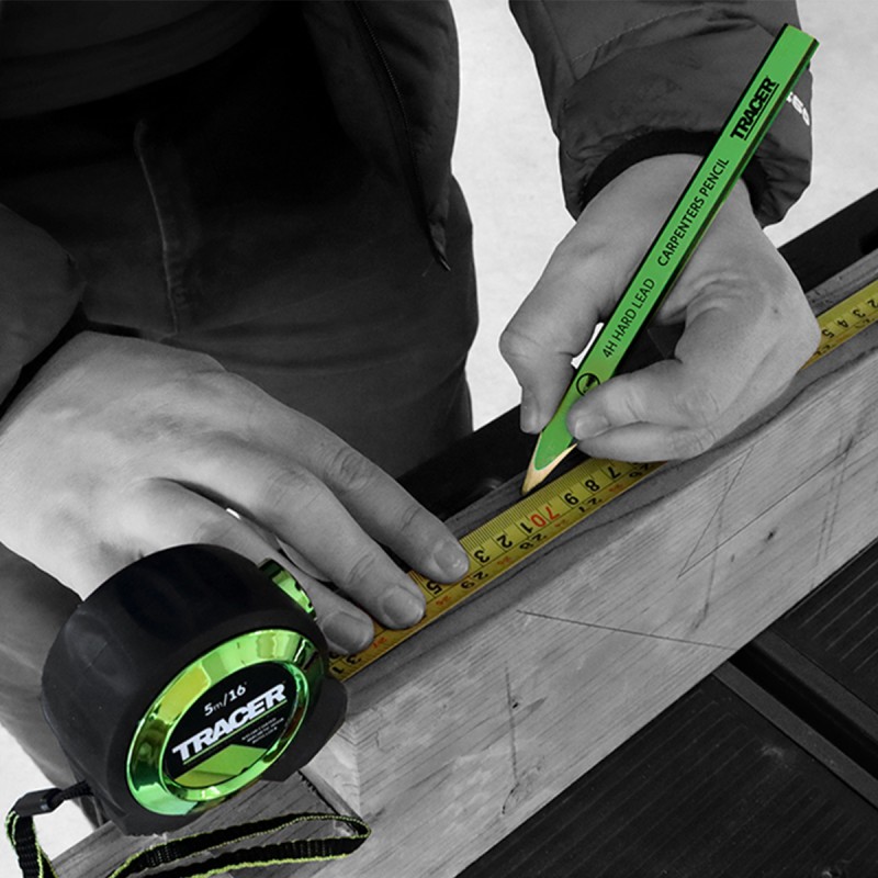 Περιγραφή: Το μολύβι TRACER Carpenters είναι ένα μολύβι 4H βαρέως τύπου κατάλληλο για σήμανση κατασκευής γενικής χρήσης. Παρέχεται σε συσκευασία 12 τεμαχίων, συμπεριλαμβάνει και ξύστρα. Είναι μια τέλεια προσθήκη δίνοντας εύρος μέτρησης και σήμανσης. Ιδανικό για σήμανση σε ξύλο και γυψοσανίδα με αξιόπιστη έντονη σήμανση.