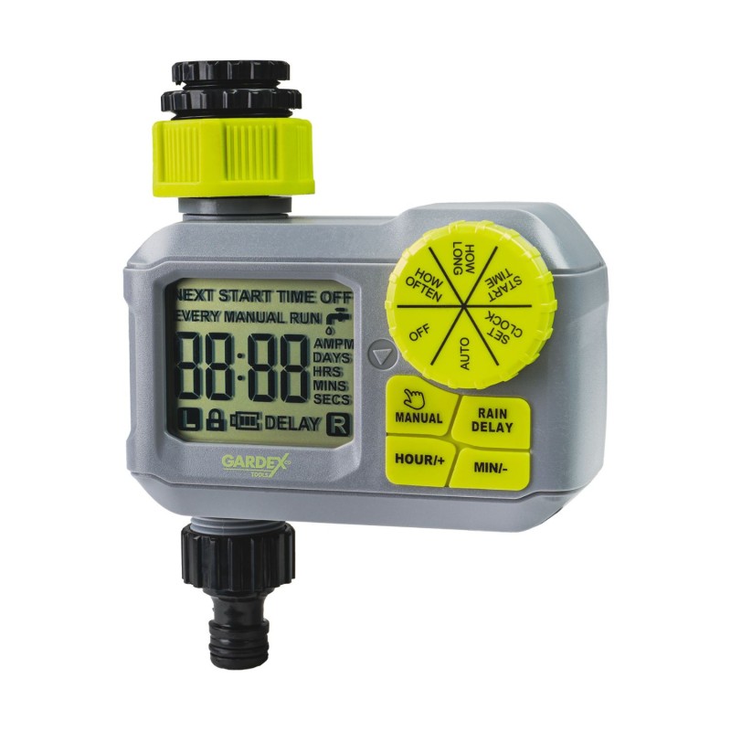 Ο ηλεκτρονικός προγραμματιστής ποτίσματος GARDEX 401205 είναι η ιδανική λύση για τον αυτόματο έλεγχο της άρδευσης στον κήπο ή το εξοχικό. Λειτουργεί με μπαταρίες, δεν απαιτεί ρεύμα και υποστηρίζει σύνδεση με αισθητήρα βροχής για ακόμη μεγαλύτερη εξοικονόμηση νερού. Με πλήθος ρυθμίσεων ποτίσματος, από λεπτομερή χρονικά διαστήματα έως εβδομαδιαίο κύκλο, σας επιτρέπει να προσαρμόσετε το πρόγραμμα ποτίσματος ακριβώς στις ανάγκες των φυτών σας.