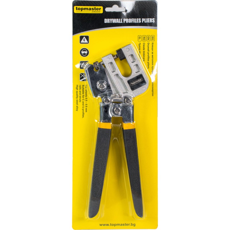 Η πένσα διάτρησης TOP MASTER 250256 είναι ιδανική για εργασία με γυψοσανίδες και μεταλλικά προφίλ, προσφέροντας δυνατότητα κοπής έως 0,8 mm. Το μήκος των 270 mm παρέχει ευχέρεια κινήσεων, ενώ η ελαφριά και συμπαγής κατασκευή της την καθιστά πολύ βολική στη χρήση. Οι ισχυρές λαβές εξασφαλίζουν ασφαλές και άνετο κράτημα κατά την εργασία, κάνοντάς την μια αξιόπιστη επιλογή για επαγγελματίες και ερασιτέχνες.