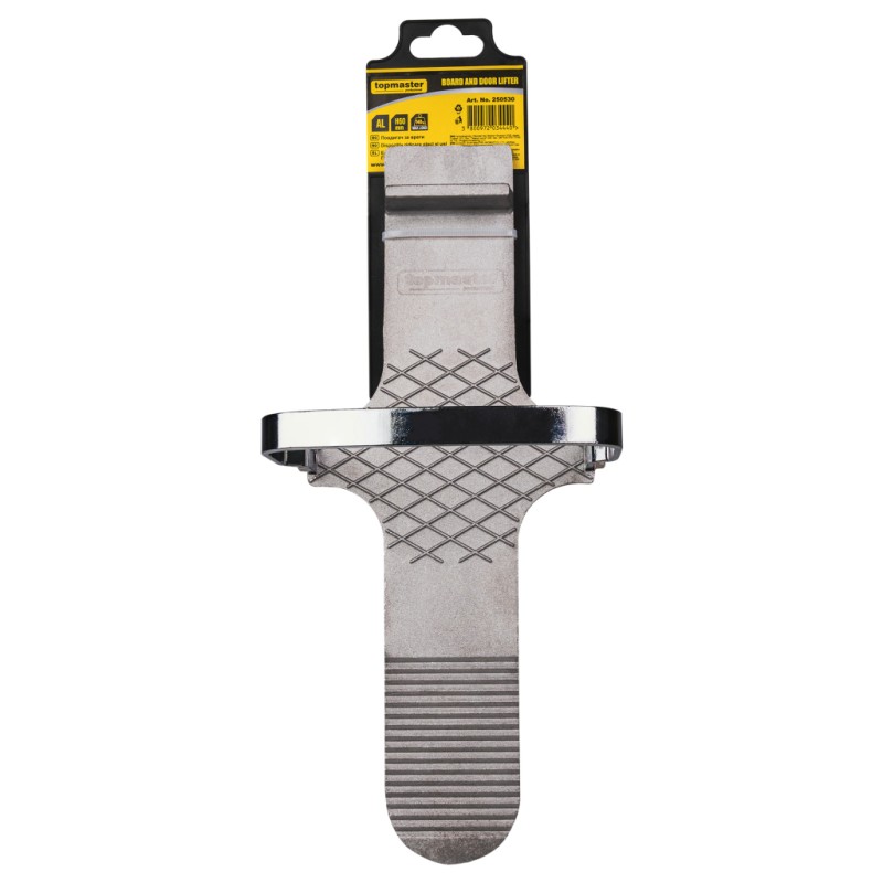 Το ανυψωτικό πετάλ γυψοσανίδας και πόρτας της TOP MASTER είναι ένα επαγγελματικό εργαλείο σχεδιασμένο για την εύκολη ανύψωση και ευθυγράμμιση γυψοσανίδων και θυρών κατά τη διαδικασία εγκατάστασης. Κατασκευασμένο από ανθεκτικό αλουμίνιο, αυτός ο ανυψωτήρας προσφέρει αντοχή και μακροχρόνια χρήση. Η φαρδιά βάση και το μεγάλο στήριγμα σύσφιξης εξασφαλίζουν σταθερή υποστήριξη για τη στήριξη και ανύψωση των πάνελ ή θυρών, διευκολύνοντας την εργασία σας. Το ειδικό στήριγμα που καλύπτει το παπούτσι επιτρέπει τον εύκολο χειρισμό, ανύψωση και μετακίνηση της πλάκας χωρίς την ανάγκη χρήσης των χεριών, κάνοντάς το ιδανικό για επαγγελματική χρήση αλλά και για άλλες εφαρμογές ανύψωσης βαριών αντικειμένων έως 140 κιλά.