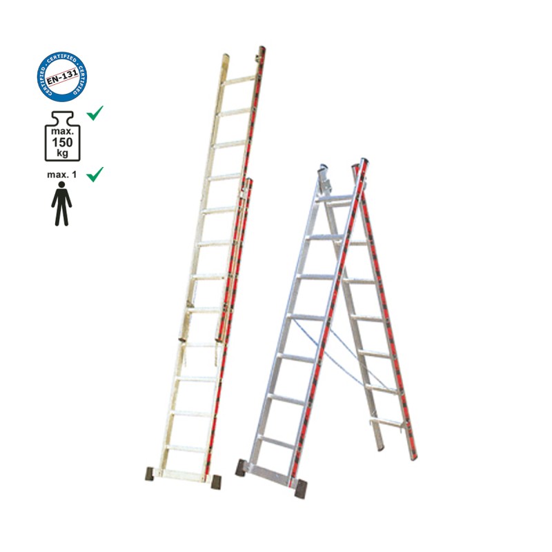 Η επαγγελματική σκάλα αλουμινίου διπλή με 2 x 9 σκαλιά προσφέρει υψηλή σταθερότητα και ασφάλεια κατά τη χρήση. Η διπλή πτυσσόμενη κατασκευή εξασφαλίζει ευελιξία στη μεταφορά και εύκολη αποθήκευση. Κατασκευασμένη από αλουμίνιο για ελαφριά βάρη και αντοχή, είναι η ιδανική επιλογή για επαγγελματικές εργασίες υψηλά.