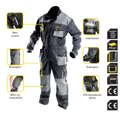 Η ολόσωμη φόρμα Top Master σε μέγεθος XXL είναι κατασκευασμένη από υψηλής ποιότητας υλικό, συνδυάζοντας το 65% πολυεστέρα με το 35% βαμβάκι για άνεση και αντοχή. Ιδανική για διάφορες εργασίες, αυτή η ολόσωμη φόρμα προσφέρει άνετη εφαρμογή και ανθεκτικότητα.